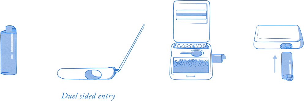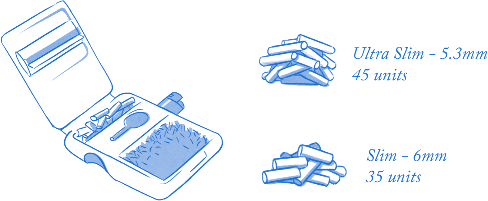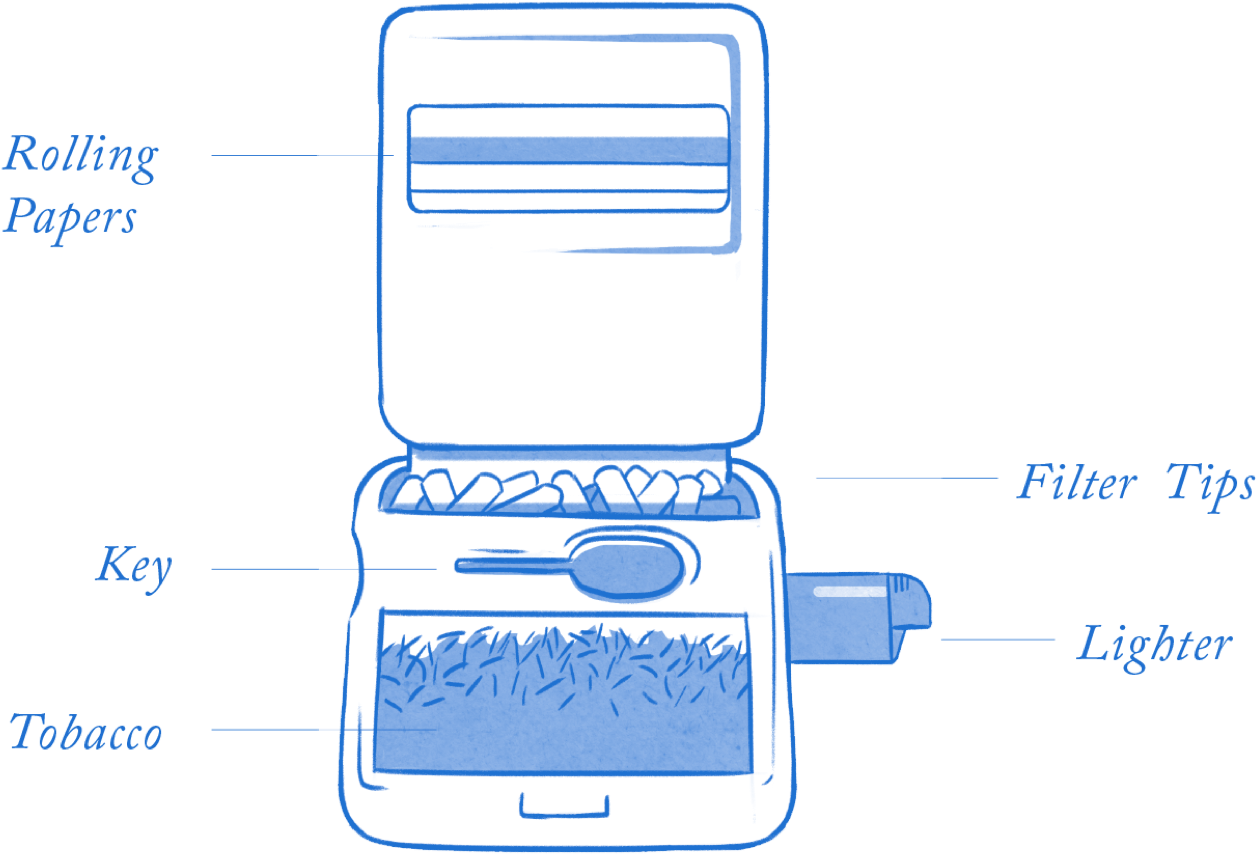 Wunderschön gestaltete und patentierte Tabakdose. Für das gesamte Zubehör: Tabak, Rollpapier, Filter und Feuerzeug. Einfach zu transportieren.
